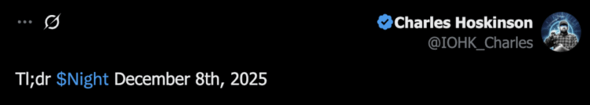 He also announced that the NIGHT token, the native utility token of Cardano’s privacy-focused sidechain Midnight, will begin distribution, exchange listings, and trading with liquidity on December 8, 2025.