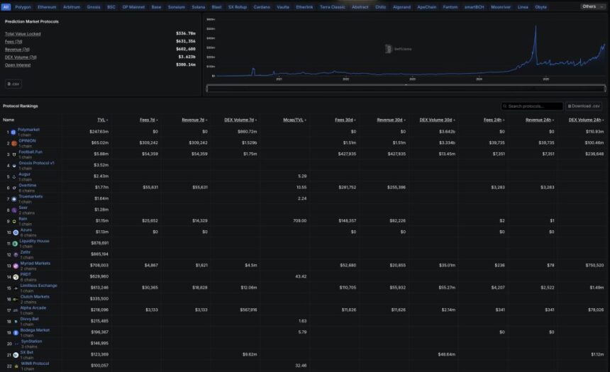 People already understand how these concepts work. Crypto simply adds another layer. Some compare prediction markets to meme coins before their major boom. There is significant growth potential here, and the same level of risk for users. For now, prediction markets remain early. According to DeFiLlama, total value locked (TVL) stands at roughly $337 million.