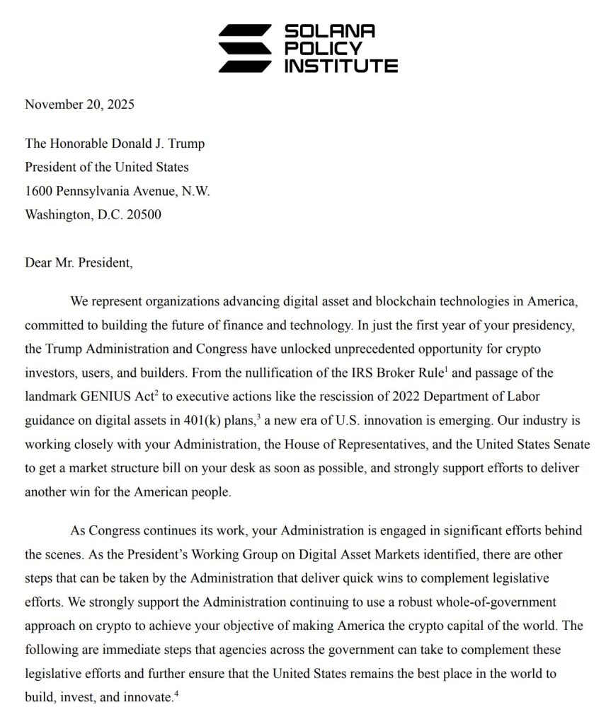 The joint letter, sent on November 20 and signed by leading industry associations, DeFi builders, investors, and research groups, calls on federal agencies to deliver immediate regulatory and tax clarity while ending what the group describes as “regulation by prosecution.”